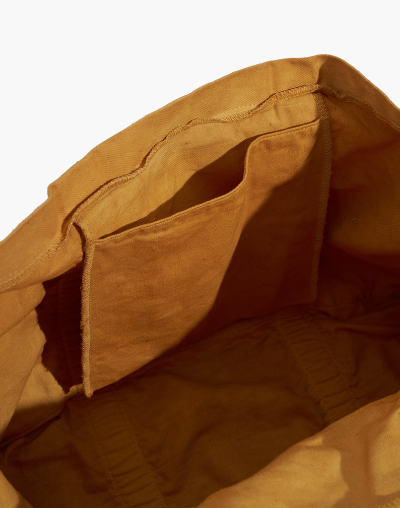 To dye this bag, we worked with a specialist in natural dying. This is a really a craft process, produced by hand, one by one. For the yellow color she used onion peel, for the greyish green, yerba mate and for the dark brown she used a mixed of tree bark from two different trees from Argentina, the Gusyacan and the Vinal.